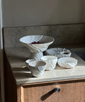 Denne fine opsats er nænsomt håndlavet i Aarhus af det reneste hvide porcelænsler. Designet er tænkt som en dekorativ og funktionel lille skål – ideel til servering af snacks eller som et æstetisk sted til dine yndlingsting.