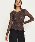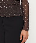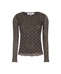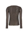 Soft Rebels Roselyn O-neck Top i Coffee Bean Dot er en feminin og legende style, der tilfører personlighed til din hverdagsgarderobe. Den klassiske O-hals og korte ærmer skaber et enkelt og flatterende snit, mens det fine prikkede print i varme kaffebrune nuancer giver et moderne og grafisk udtryk. Toppen er fremstillet i en blød og behagelig kvalitet, som føles let mod huden og gør den ideel til både arbejde og fritid.