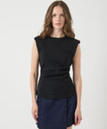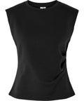 Toppen er fremstillet i en blød og elastisk jersey-kvalitet bestående af 80 % bomuld, 15 % polyester og 5 % elastan. Materialet er åndbart og fleksibelt, hvilket sikrer en behagelig pasform hele dagen. Med sin regular fit og klassiske O-hals får du en flatterende silhuet, mens skulderpuderne og den diskrete samling i siden tilføjer struktur og kant til designet.