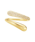 Ringen i 18 karat guld er fuldendt med funklende diamanter i pavé-fatning, der tilføjer et luksuriøst og diskret touch. Det raffinerede design kombinerer kunstnerisk elegance med tidløs skandinavisk æstetik – perfekt til den moderne kvinde, der værdsætter eksklusivt design med dybde og betydning.