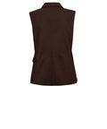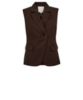 Den bløde coffee-farve giver vesten en sofistikeret og alsidig karakter, der passer smukt til både neutrale og farverige looks. Det gennemtænkte design sikrer en flatterende pasform, der kan styles både over en let bluse til hverdagen eller over en kjole til mere formelle anledninger.