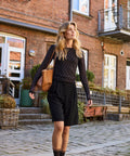 Denne sofistikerede bluse kombinerer nordisk minimalisme med feminin elegance. Den klassiske sorte farve er tidløs og alsidig, mens det diskrete logo-print understreger det høje kvalitetsniveau.