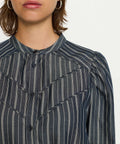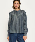 Soft Rebels Charlotte Blouse i Artic Wolf Stripe er en elegant og alsidig style, der kombinerer klassisk stribeprint med et moderne snit. Den lette og bløde kvalitet gør blusen behagelig at have på hele dagen, mens de fine striber i afdæmpede nuancer tilfører et sofistikeret og nordisk udtryk. Med sin flatterende pasform, rund hals og diskrete detaljer er Charlotte-blusen et oplagt valg til både kontor, hverdagsbrug og mere formelle anledninger.